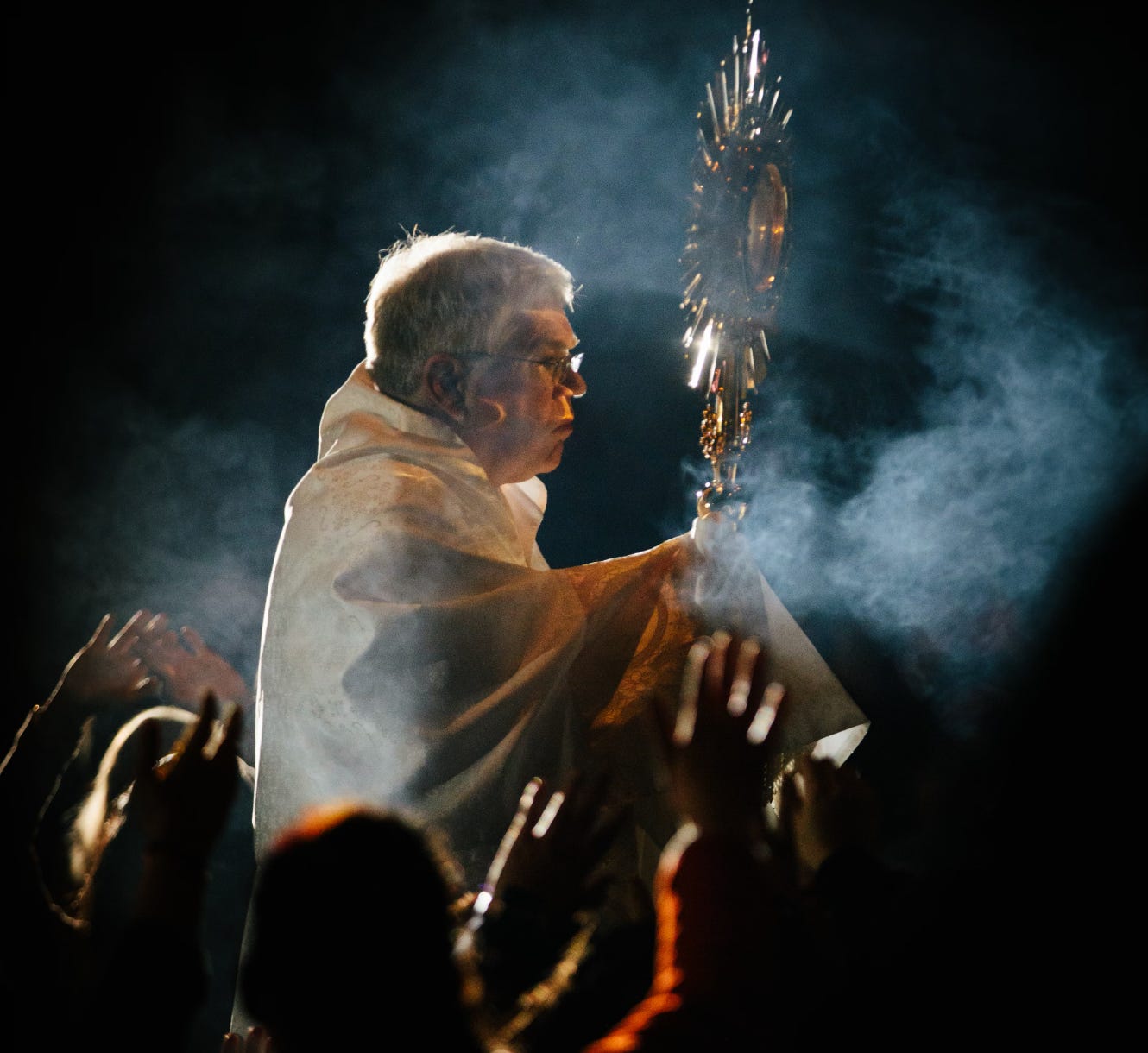 When one person shared a view of a stadium packed with thousands of Catholic kids on Twitter, many people called this out as emotional manipulation–the clapping and parading of the monstrance around the space and young women fainting when it drew close. It reminded people of Evangelical Megachurches, where service became a spectacle with giant television screens, light shows, and more the vibes of a tech conference than church.